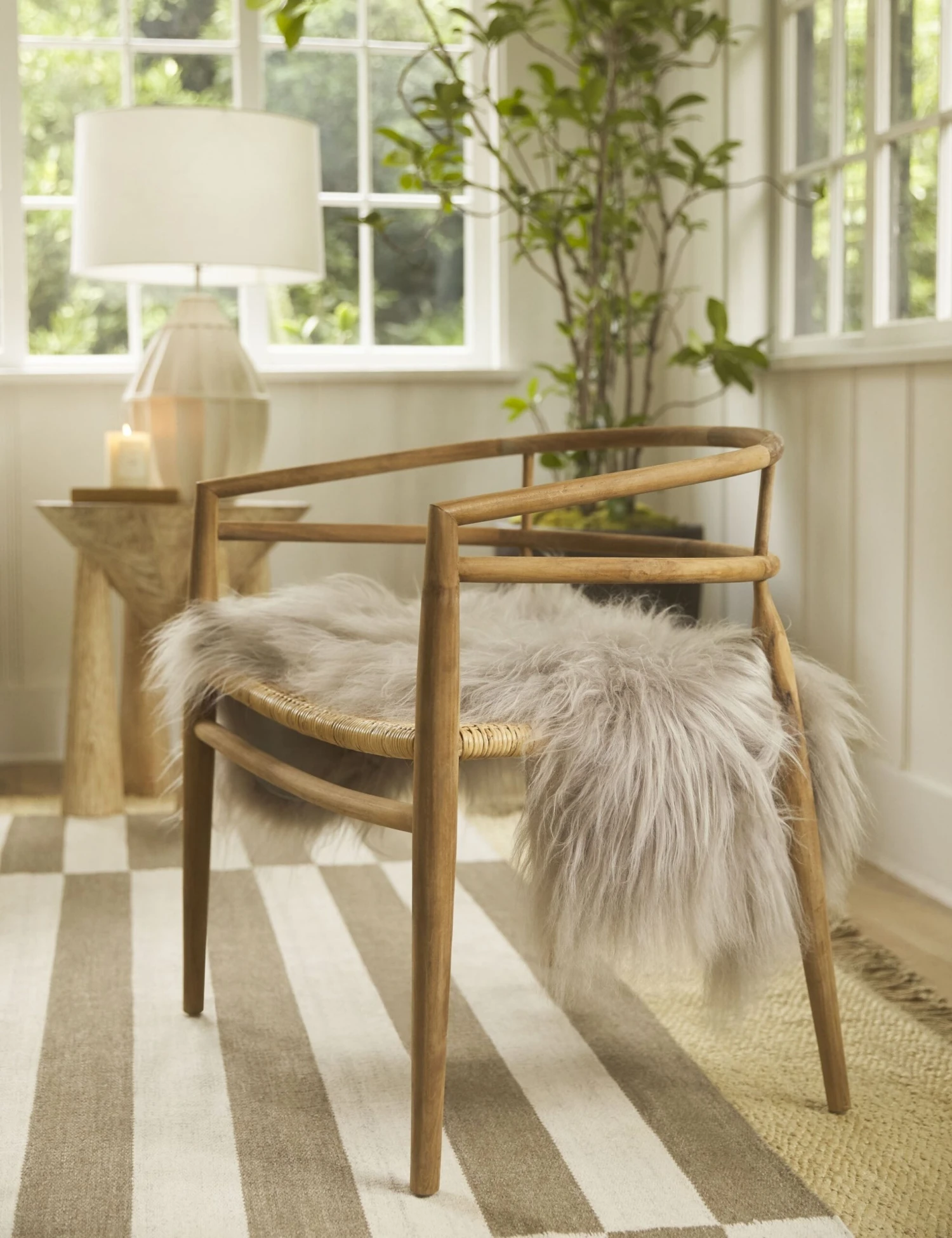 A simple accent chair based on mid-century inspiration, the Desie features a solid teak frame with tapered legs and a low curved back. The silhouette is completed with a woven rattan seat, making it a unique addition to your space. Try it as an occasional chair in your living space or use at the heads of your dining table.
