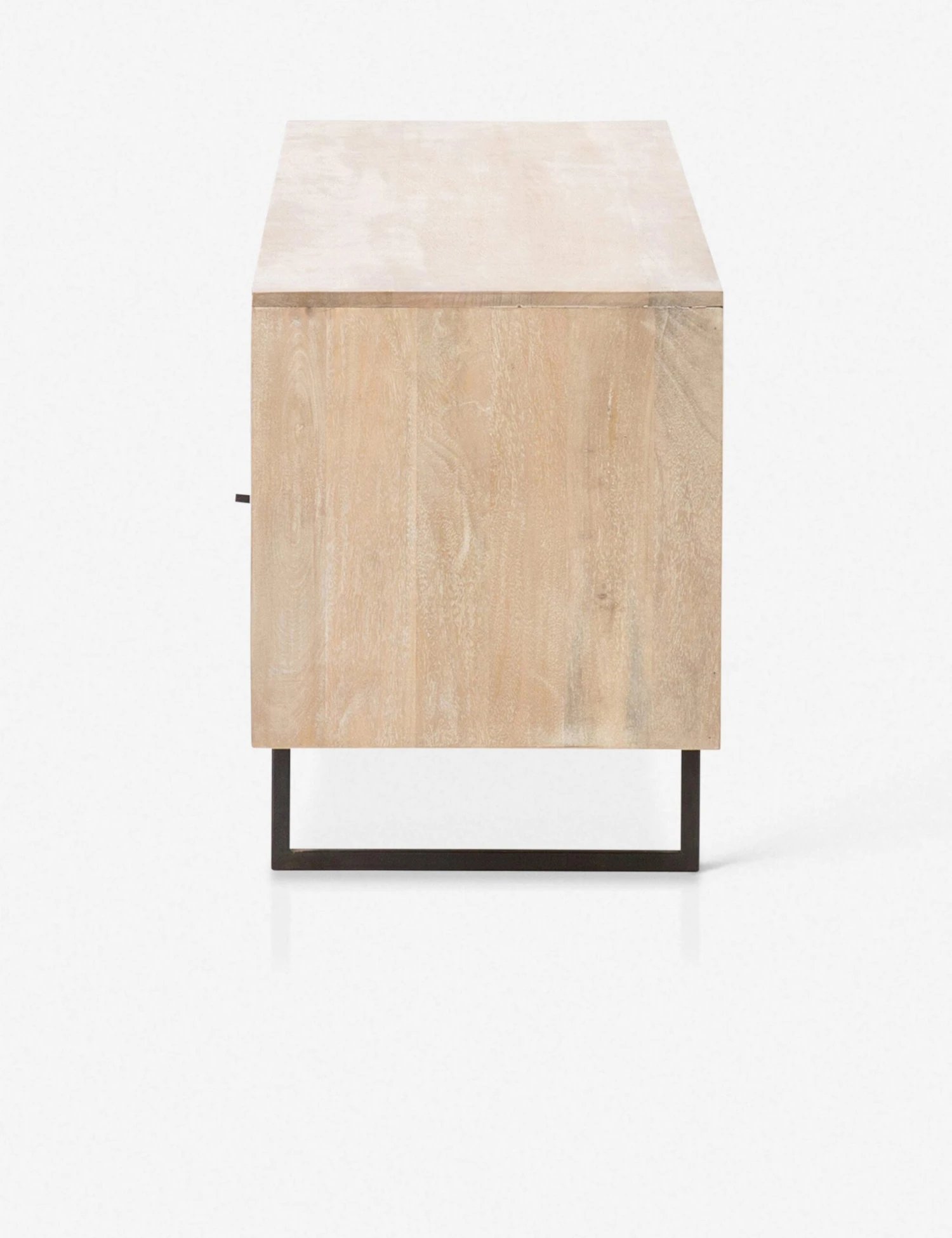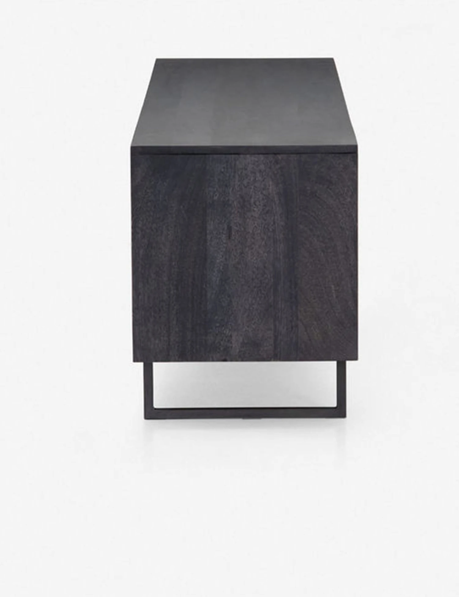 Eighteen inches of depth in this media console means that you’ve found the perfect ample low storage cabinet for your most-used living and dining spaces. The even better news is that this entertainment center looks effortlessly elegant, even when packed with everyday items. Three woven cane doors conceal clutter and contrast against the black or natural finish, while the cabinet’s open shelving above offers room for books and small decor.
