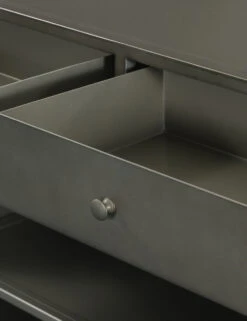 In a sleek nod to a shadow box design, this cabinet features an iron frame with glass doors for storage and display. The Malcom Small Curio Cabinet offers two drawers and shelving for a clean look with an industrial edge.