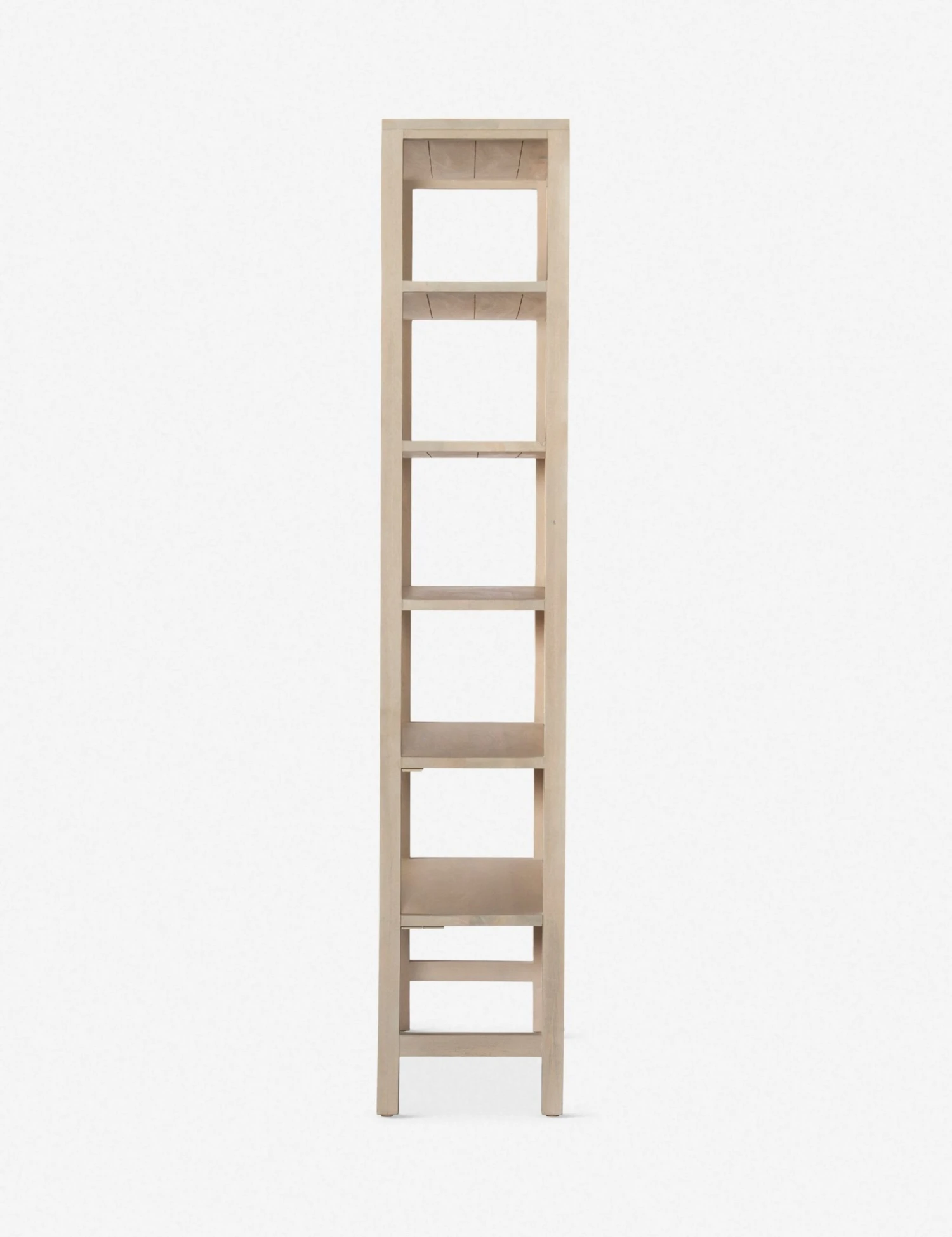 Spacious, open shelving is essential for transitional spaces. This tall wooden bookshelf has an airy, natural feel with a light mango wood frame and a woven cane backing for added texture. The open bottom is perfect for adding storage bins or baskets to complete the look.
