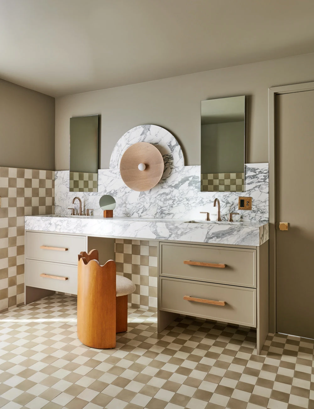 Wavy lines give this accent chair a distinctive profile to match its barrel back, timeless woodwork quality, and sleek upholstered seat. We love this small chair as an accent in a living room or bedroom or as a vanity stool. This piece is from our exclusive Sarah Sherman Samuel collaboration and features all the trademarks of her warm, edited style.